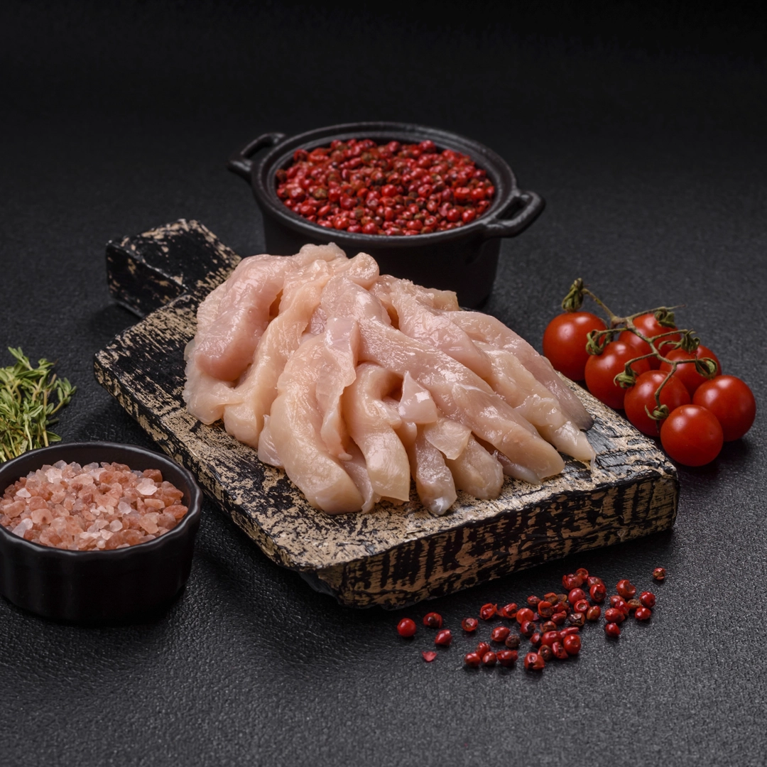 Ideal for stir-fries, these fresh halal chicken strips come from a trusted meat shop.